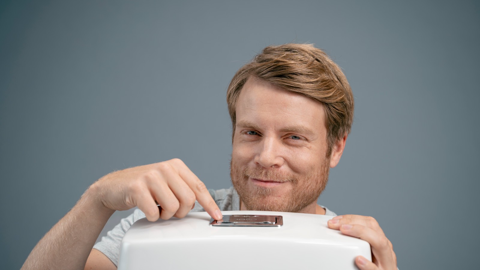 Du trenger egentlig bare å se på skylleknappen. Skylleknappen viser ofte produsentens navn. Hvis du har et Porsgrund-toalett, kan du sammenligne skylleknappen med modellene våre – kjenner du igjen en av dem på bildene under?